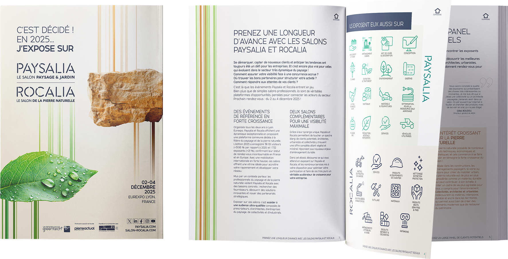 Avec un titre explicite "C’est décidé, en 2025 j’expose sur Paysalia/Rocalia", ce deuxième ebook s’adresse directement à celles et ceux qui souhaitent booster leur visibilité, rencontrer les bons prospects et saisir les opportunités offertes par deux salons en forte croissance.