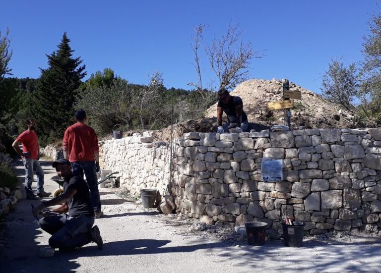 Plusieurs chantiers-écoles ont été menés pour former ou initier différents publics à la restauration de murs en pierre sèche. Six chantiers ont été lancés par la CNFPT, Batipole et le PNR pour le personnel municipal, les futurs professionnels du bâtiment et les habitants de la commune de Bages.