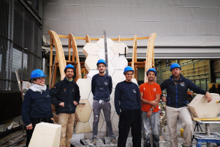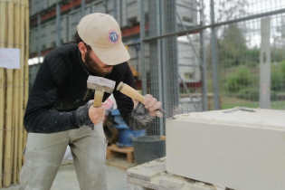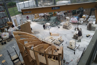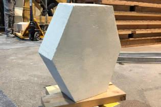 Cette œuvre en pierre naturelle a ensuite été confiée aux Compagnons du Devoir qui ont assuré sa fabrication et sa construction aux Grands Ateliers de Villefontaine. Une expérience très enrichissante pour les étudiants de la formation qui ont pu travailler sur un projet innovant.
