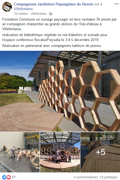Cette œuvre d'art a pu voir le jour durant Rocalia 2019 où elle a été exposée grandeur nature. Une véritable fierté pour le salon qui a pu accueillir ce projet de stéréotomie mêlant pierre naturelle et végétaux grâce à une composition végétale réalisé par les étudiants Jardiniers-Paysagistes des Compagnons du Devoir et du Tour de France. La réussite de cette pièce a permis une nouvelle fois de mettre à l'honneur la synergie entre ces deux filières si complémentaires.