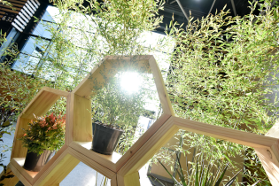 L’exposition d’une pièce en pierre naturelle agrémentée de végétaux