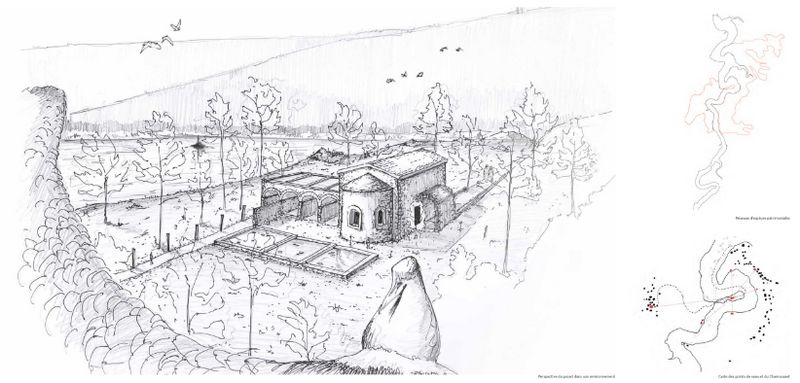 Au nord-ouest de Saint-Étienne, dans une zone classée natura 2000, se trouve une chapelle romane accrochée aux ruines d’une ferme du XVIIIe siècle. Accessible par un chemin de randonnée ou par une barque, c'est un témoin des Gorges de la Loire que cette équipe a souhaité revaloriser.