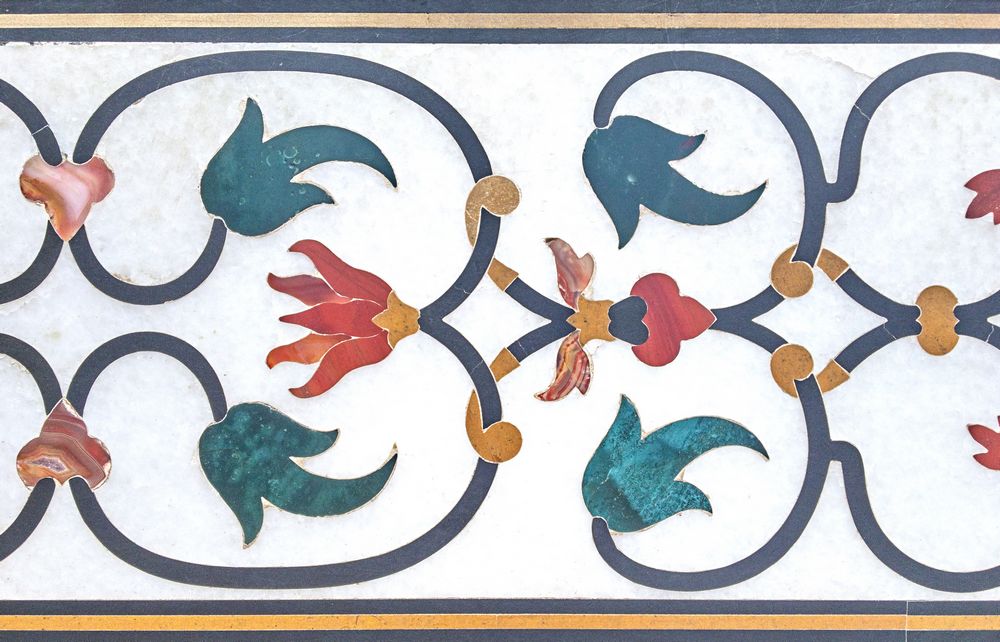 Travail de marqueterie de pierres dures dans le Taj Mahal. © Alex Shadrin / Adobe Stock