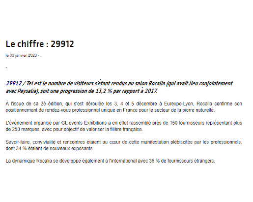 Rocalia, salon référent de la filière pierre naturelle, vient de fermer ses portes. Cette édition 2019 aura été très positive et ce malgré le contexte de grèves. Que faut-il retenir du salon ? Nous vous proposons de revenir sur ce qui a fait la réussite de cette nouvelle édition.